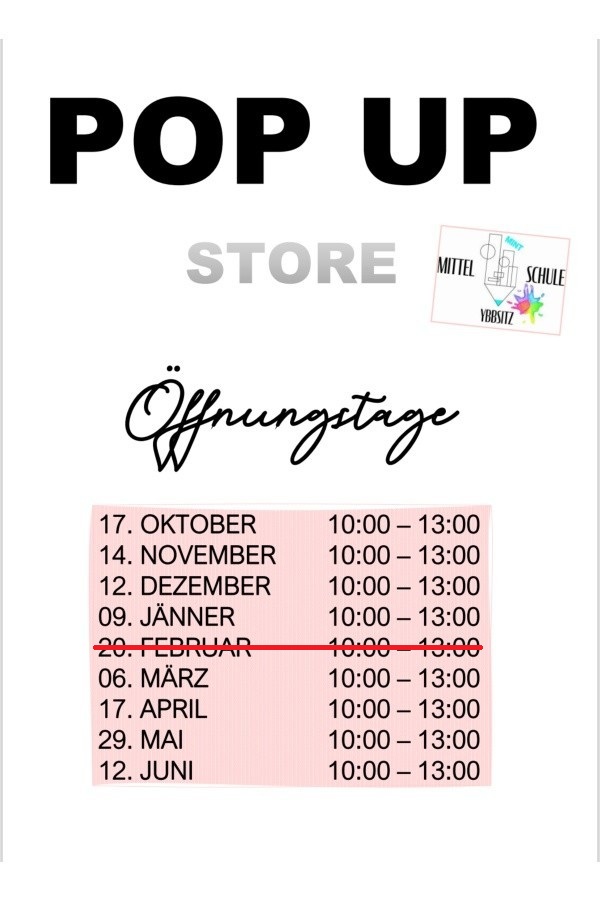 - Entstehung und Entwicklung: Aus der Unverbindlichen Übung „Soziales Engagement macht Schule“, initiiert und betreut durch Elisabeth Schasching, entwickelte sich über die Jahre das Projekt Pop-up & Repair-Store.