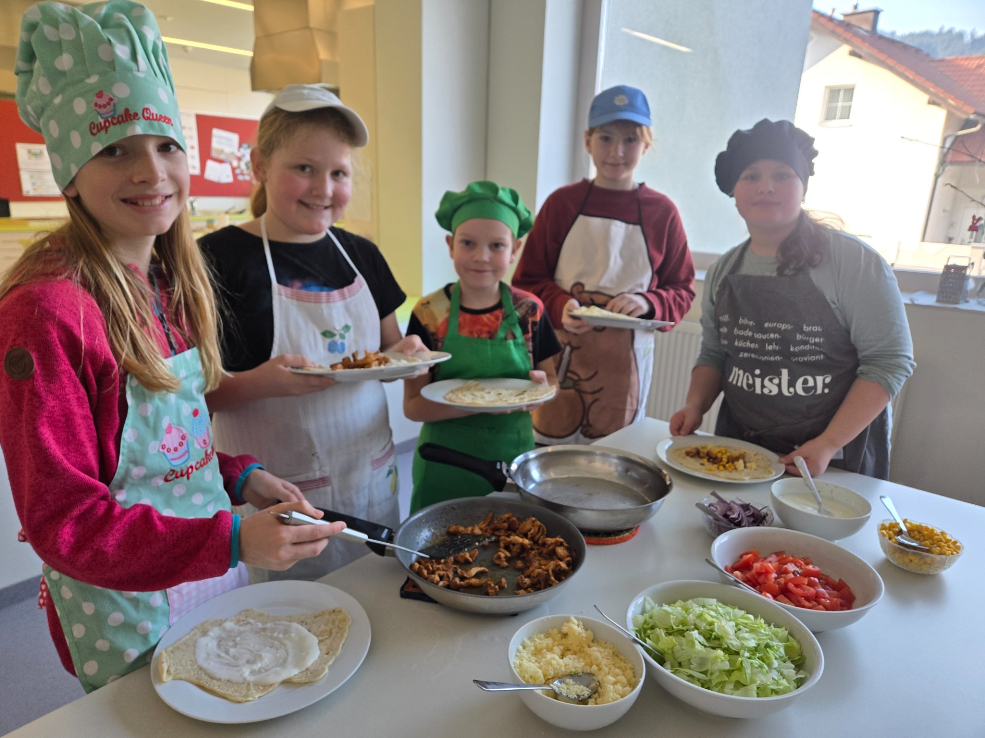 Im Freifach Kochen zeigten die Schülerinnen und Schüler der 1. und 2. Klassen ihr Können in der Küche. Mit viel Begeisterung und Teamarbeit wurden frische Wraps und köstliche Palatschinken zubereitet – natürlich alles selbst gemacht.