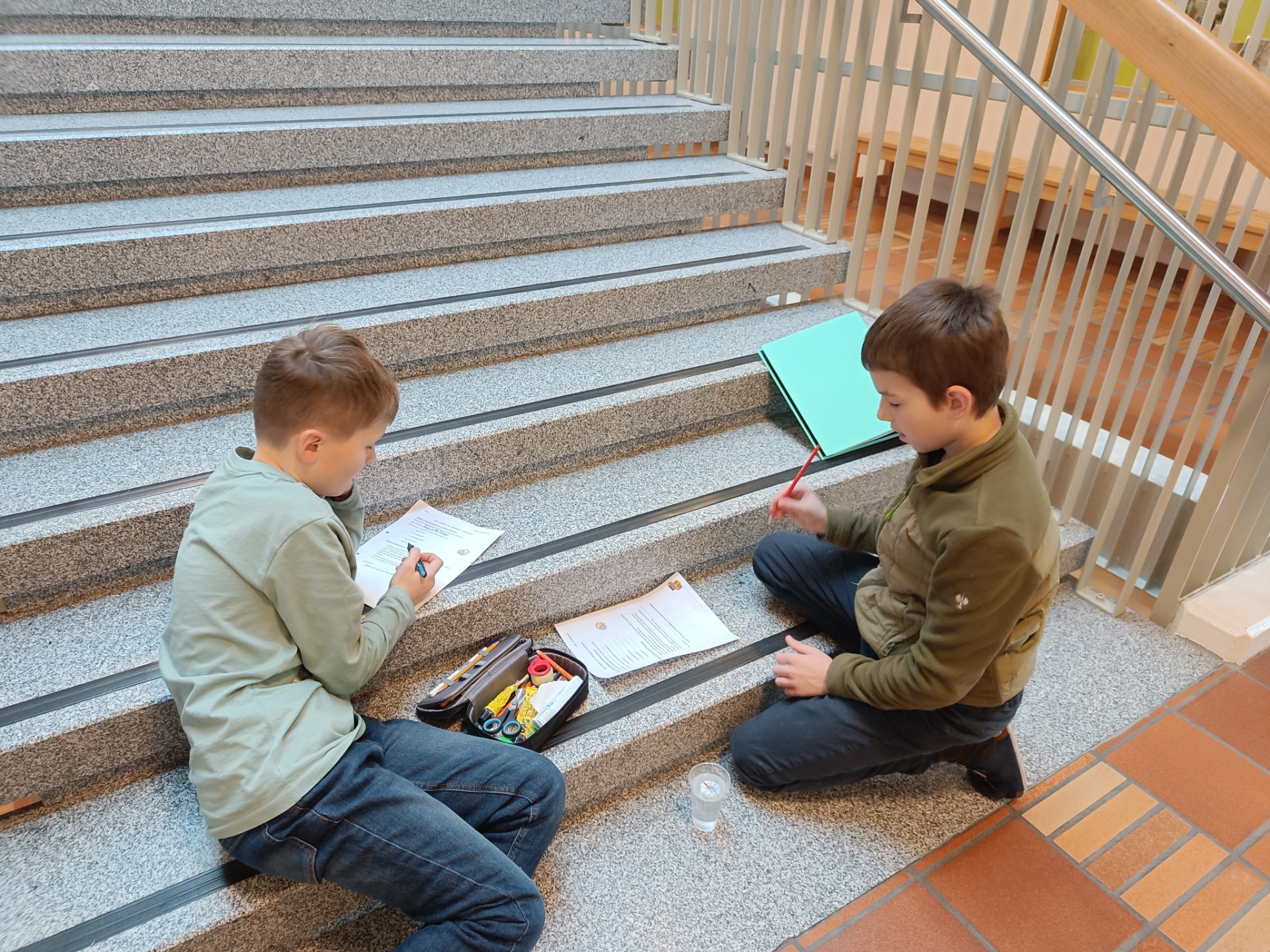 Im MINT-Unterricht haben die Kinder gelernt, wie man mit einfachen Materialien einen Kompass baut. Damit lassen sich schon nach wenigen Schritten die Himmelsrichtungen Norden, Osten, Süden und Westen bestimmen.