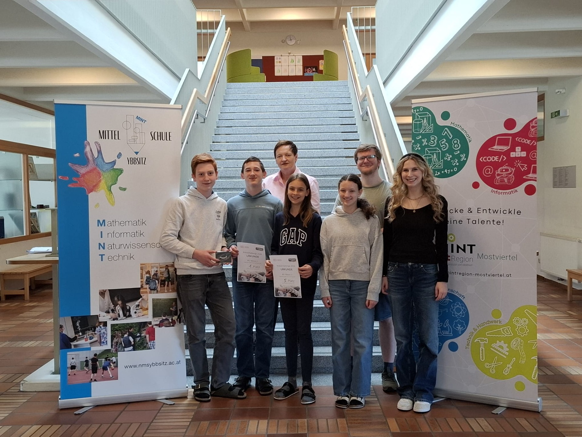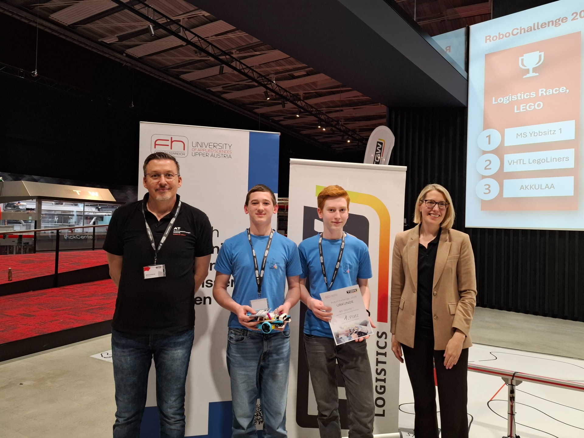 Das Team „MS Ybbsitz 1“ bestand aus Mathias Haselsteiner und Tobias Kogler, während „MS Ybbsitz 2“ von Johanna Jagersberger und Vanessa Weißensteiner vertreten wurde. Am 22. April 2026 machten sich die beiden Teams auf den Weg ins TGW Headquarter, um dort am Wettbewerb teilzunehmen.