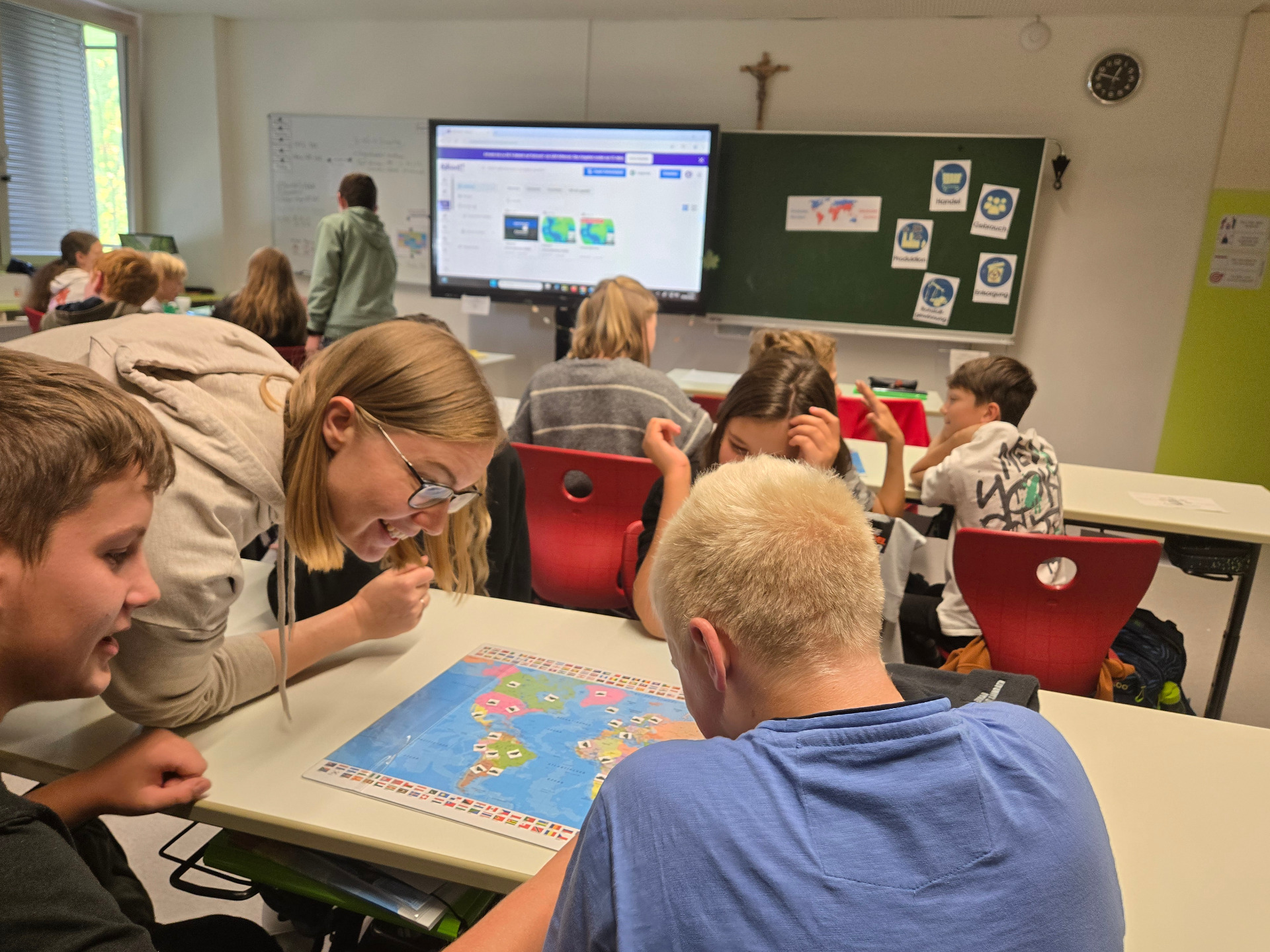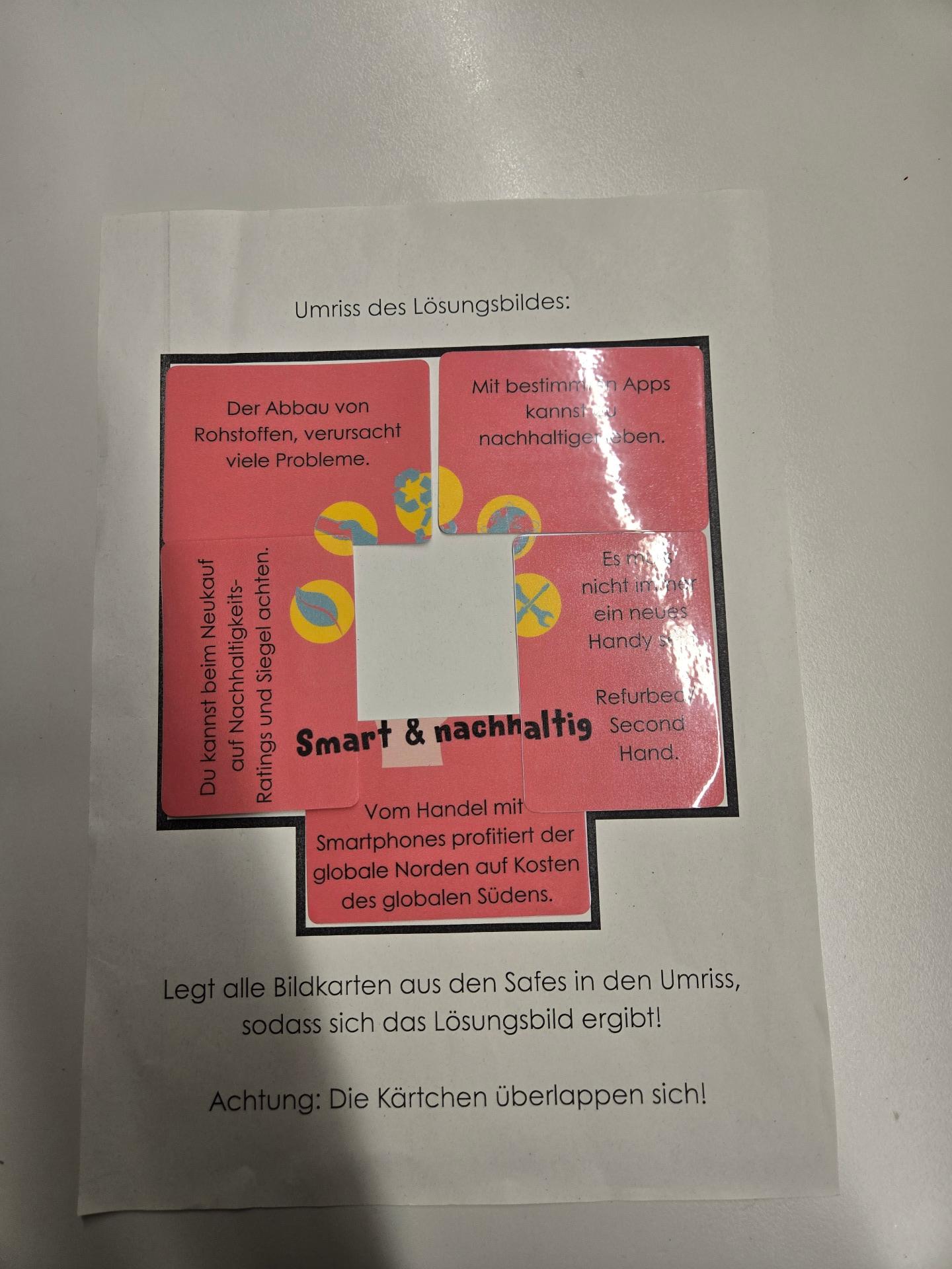 Zuerst dachten die Schülerinnen und Schüler über ihre eigenen Nutzungsgewohnheiten nach, um dann an interaktiven Stationen zu arbeiteten. Dort konnten sie den kompletten Lebensweg eines Handys entdecken – von der Rohstoffgewinnung über die Produktion und Nutzung bis hin zum Recycling.